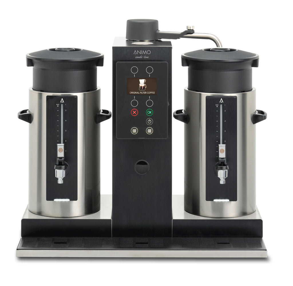 Animo ComBi-line CB 2×5 er en kompakt og effektiv dobbel urnetrakter utviklet for profesjonelle miljøer som trenger jevn kaffetilførsel i moderat volum. Med to beholdere på 5 liter hver og integrert vannvarmer er den ideell for mindre kantiner, møterom, restauranter og catering der kvalitet og effektivitet står i sentrum.