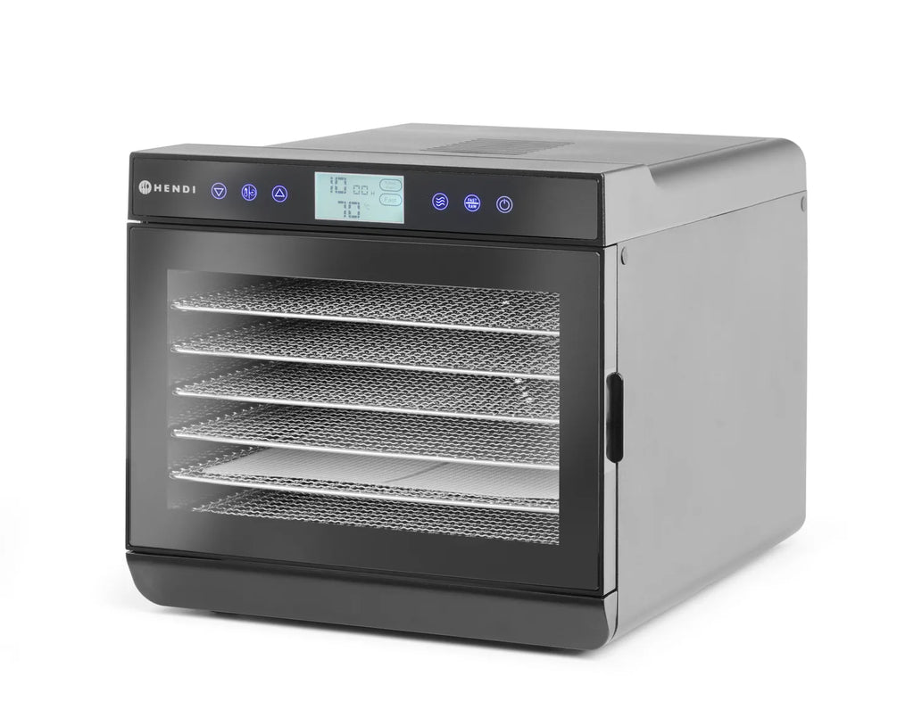 Denne dehydratoren er utviklet for deg som ønsker høy kapasitet og presis kontroll ved tørking av frukt, grønnsaker, urter eller sopp. Perfekt for kjøkken som krever effektivitet og konsistente resultater.