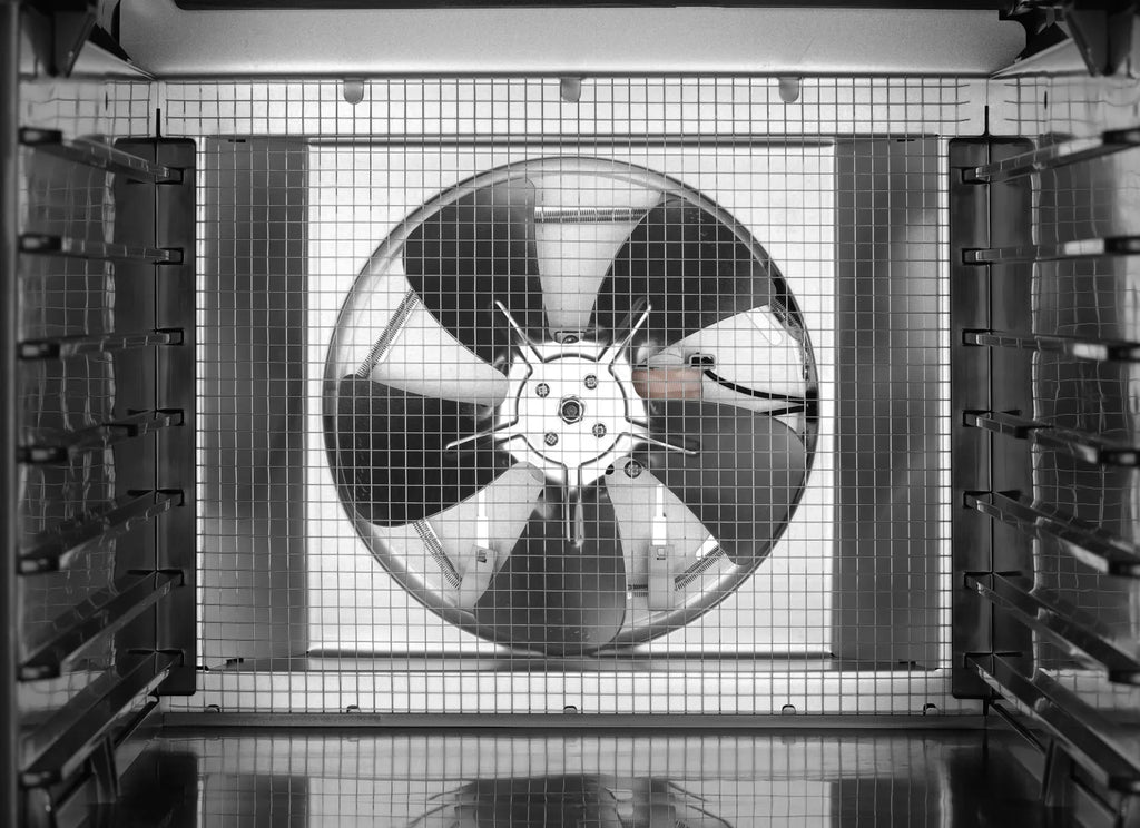 Stillegående vifte som sirkulerer varm luft jevnt — sikrer at brettene ikke trenger å snus.