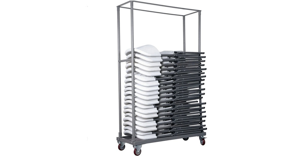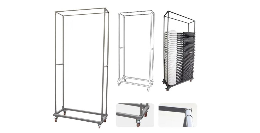 Robust og praktisk tralle designet for effektiv håndtering av stablebare stoler. Den solide stålkonstruksjonen og hjuloppsettet gjør transporten enkel, trygg og plassbesparende – ideell for bruk i hoteller, restauranter, selskapslokaler og konferansesentre.