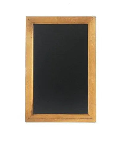 Denne veggmonterte tavlen er et enkelt og funksjonelt presentasjonsverktøy for profesjonelle kjøkken, kantiner, restauranter og serveringsområder. Tavlen har en svart skriveflate og er omgitt av en ramme i tre, noe som gir et klassisk uttrykk som passer til både moderne og tradisjonelle miljøer. Tavlen leveres med monteringskroker, slik at den enkelt kan settes opp på vegg for visning av menyer, dagspriser, spesialtilbud og annen informasjon.